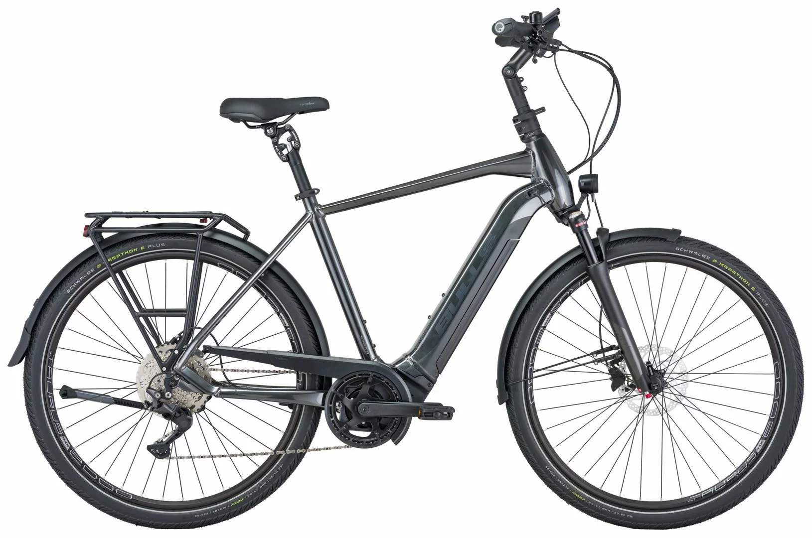 Hydroforming Alu-Rahmen mit 1.5 Zoll Steurrohr, Mobie-25 Federgabel mit 100mm Steckachse (63mm Federweg), Deore Schaltwerk, Schalthebel und Zahnkranz (11-46 Zähne), Shimano MT201 Disc-Bremsen mit Centerlock Scheiben (160/180mm), Ryde Taurus 2000 Disc Felgen, Shimano M3050 / MT400 Naben, Panasonic Ultimate Fit-Eco Mittelmotor 250W / 70Nm (95Nm als Option), 555Wh, (740Wh oder 925Wh Akku als Option), Beleuchtung über den Akku, 100 Lux Lampe, TFT-Comfort Display 3,5 Zoll, Marathon E-Plus Reifen 55-622, Ergon Griffe, Monkey-Load Gepäckträger