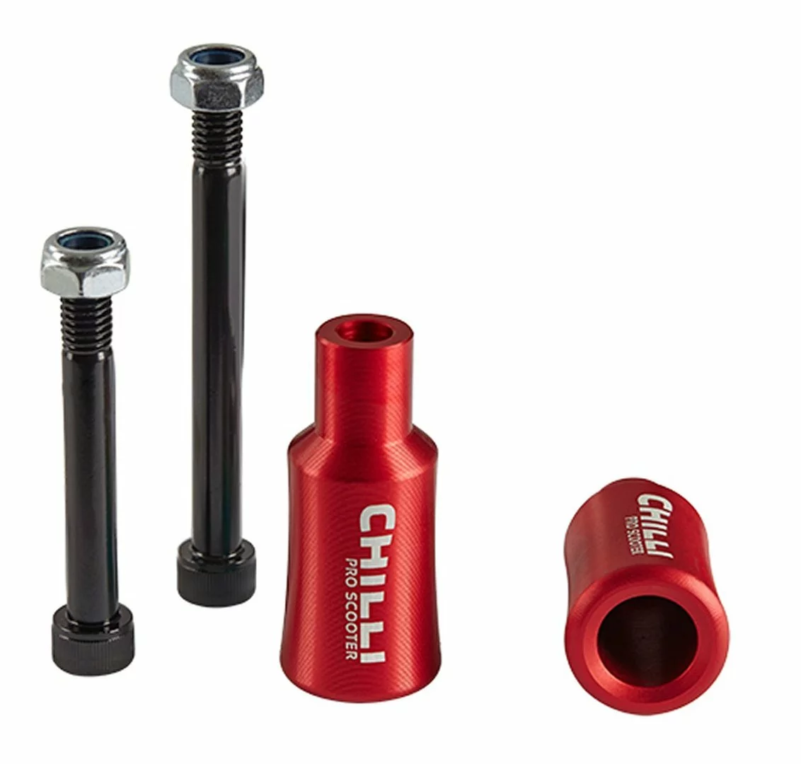 Chilli Barrel Pegs passen durch ihre Form perfekt auf das Handrail und sorgen somit für sicheren Halt. Die Pegs sind leicht zu montieren. Im Set sind: 2x Peg, 1x Achse vorne (6,7cm), 1x Achse hinten (8,7cm)
