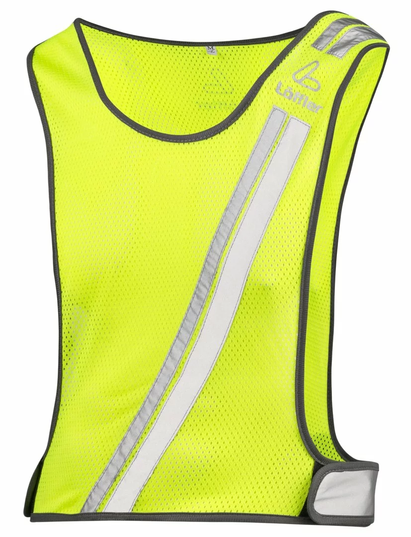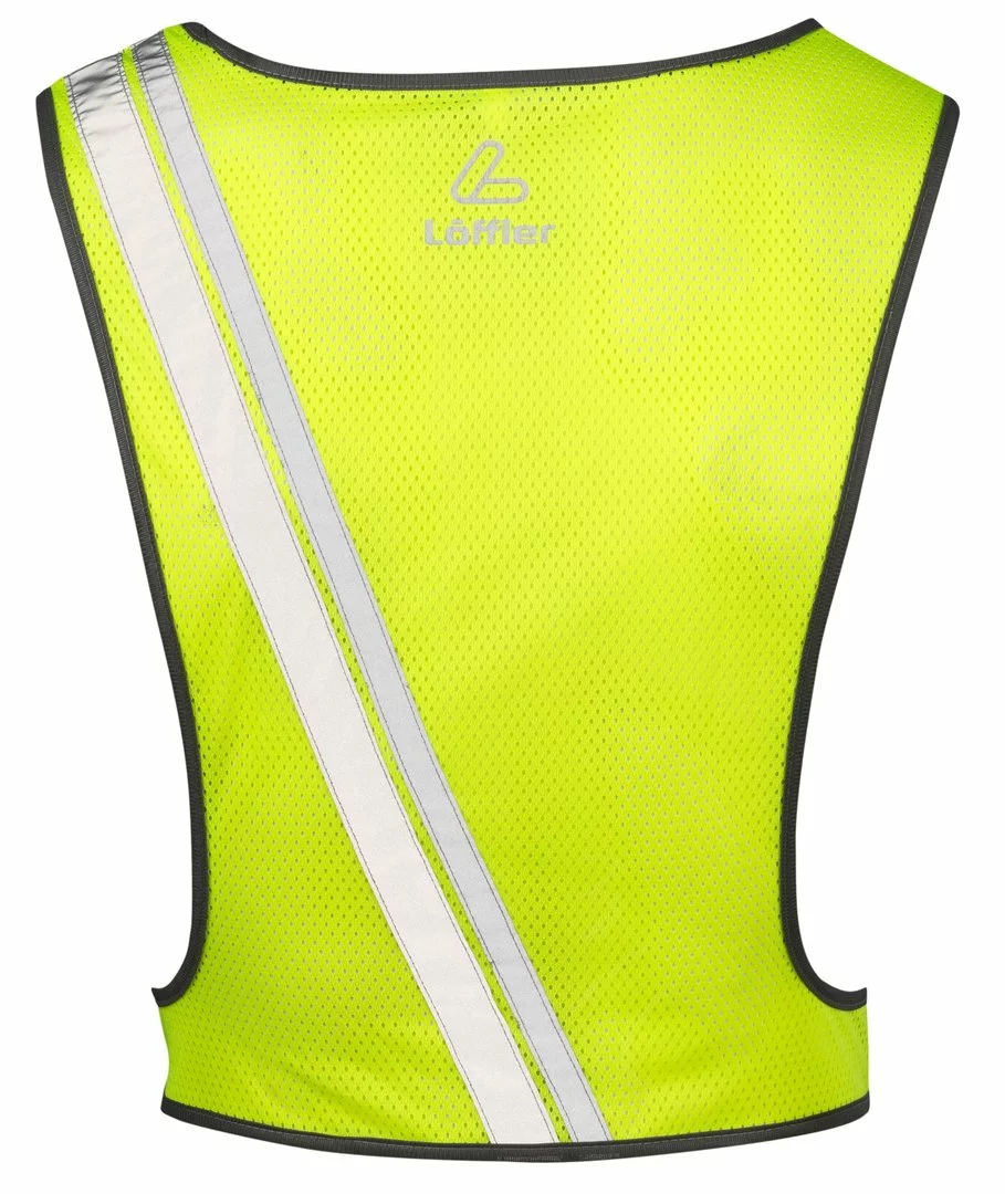 Sportlich enganliegende Reflexweste zur Erhöhung der Sichtbarkeit.