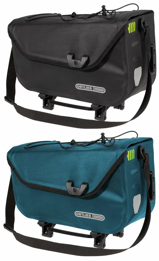 Die E-Trunk von Ortlieb, der Kofferraum für das E-Bike, wasserdicht und dank des Top-Lock Adapters nicht nur in kürzester Zeit montiert, sondern auch jederzeit mit einem Klick vom Gepäckträger abzunehmen. Die zur Ebike-Linie gehörende E-Trunk bietet mit zehn Litern Volumen nicht nur genug Stauraum, um bei einer Radtour alles Notwendige mitzunehmen. Durch eine auf der Rückseite angebrachte Aufnahme kann auch problemlos ein Flaschenhalter montiert werden, die sonst schwierige Montage von Trinkflaschenhaltern am E-Bike wird so elegant gelöst. Zusätzlich verfügt die E-Trunk über eine Halterung zum Anbringen eines zusätzlichen Rücklichtes, in Verbindung mit dem hochwertigen 3M Scotchlite Reflektor ein echtes Plus an Sicherheit. Die auf der Oberseite montierte Kordelfixierung ermöglicht das schnelle Verstauen beispielsweise einer Jacke. Falls das Rad doch einmal abgestellt wird, ist die E-Trunk mit dem Top-Lock-Adapter mit einem Griff vom Rad zu nehmen und dank des Schultertragegurtes auch bequem als Umhängetasche zu tragen. Die Netzaußentasche ist ideal, um Kleinigkeiten zu verstauen. Aber durch den magnetischen Deckelverschluß ist auch das Öffnen und Schließen so schnell, dass das Verstauen in der Tasche fast ebenso schnell geht. Auch wenn das Öffnungsprinzip so leicht ist und dazu verführt viel einzupacken, die maximale Zuladung der E-Trunk beträgt zehn Kilogramm. Nachhaltig hergestellt wird die PVC-freie Gepäckträgertasche in Deutschland und ist kompatibel mit nahezu allen Gepäckträgern von 80 bis 160 mm Breite und einem Rohrdurchmesser von 8 bis 16 mm.