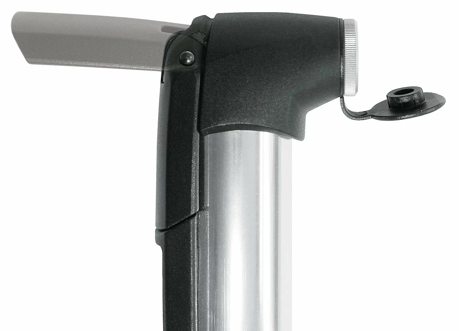 Das solide Aluminiumrohr ist teilweise mit einer eleganten Kunststoffschicht ummantelt – diese Pumpe musst du sicher nicht verstecken. Das Doppel-Ventil erlaubt den einfachen Wechsel von Schrader- und Presta-Ventil.