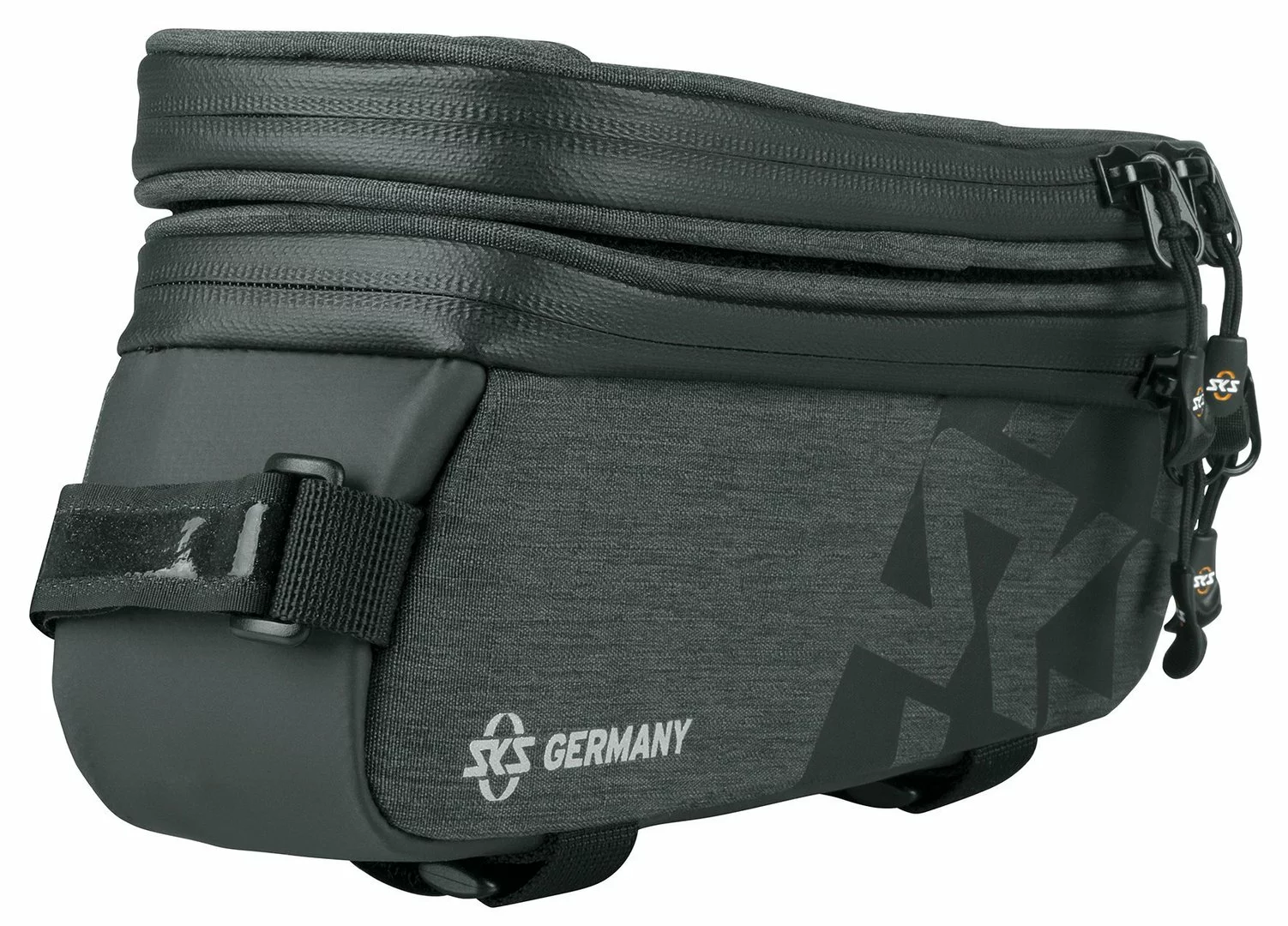 Dank der Klett-Unterseite kann die Handytasche einfach abgenommen werden. Mit robusten, gummierten Klettverschluss-Halterungen wird die Tasche gut erreichbar am Oberrohr befestigt. Zur Ausstattung gehören ebenfalls laminierte, wasserdichte Reißverschlüsse mit ergonomischem EASYZIP, übersichtliche Innentaschen und orangefarbenes Innenfutter zum leichteren Finden der Utensilien.