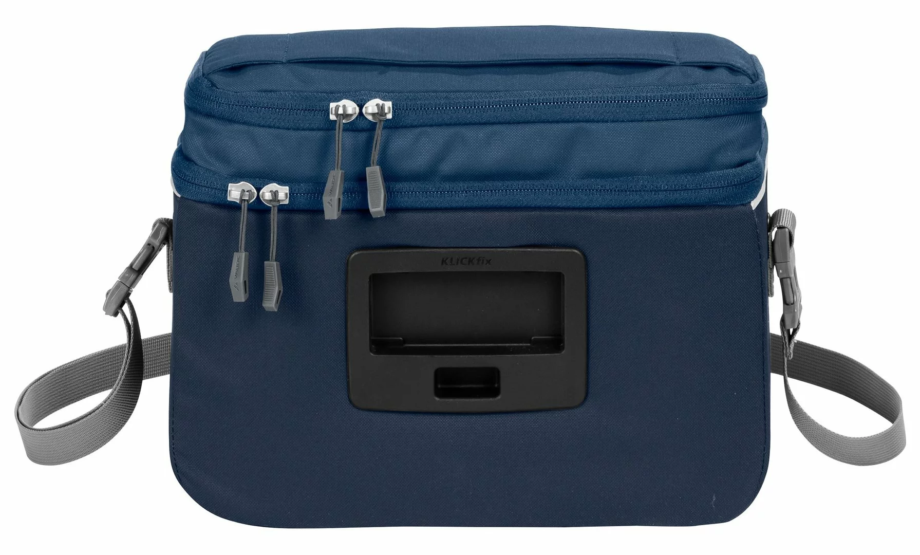 Auf Radwegen zu Hause. Die große Lenkertasche im klassischen Look wird aus einer Kombination aus leichten und robusten Materialien hergestellt, die nach dem strengen Umweltstandard bluesign®zertifiziert sind. Das Deckel- und Hauptfach sind mit Organizerfächern ausgestattet; darin verstaust Du Wertgegenstände übersichtlich und kannst jederzeit schnell darauf zugreifen. Die Tasche wird per KlickFix-Adapter stabil am Lenker befestigt und lässt sich schnell und einfach abnehmen. Durch den mitgelieferten Tragegurt kannst Du sie bequem über der Schulter tragen. Reflexstreifen sorgen rundum für eine gute Sichtbarkeit im Straßenverkehr. Inklusive Regenhülle.